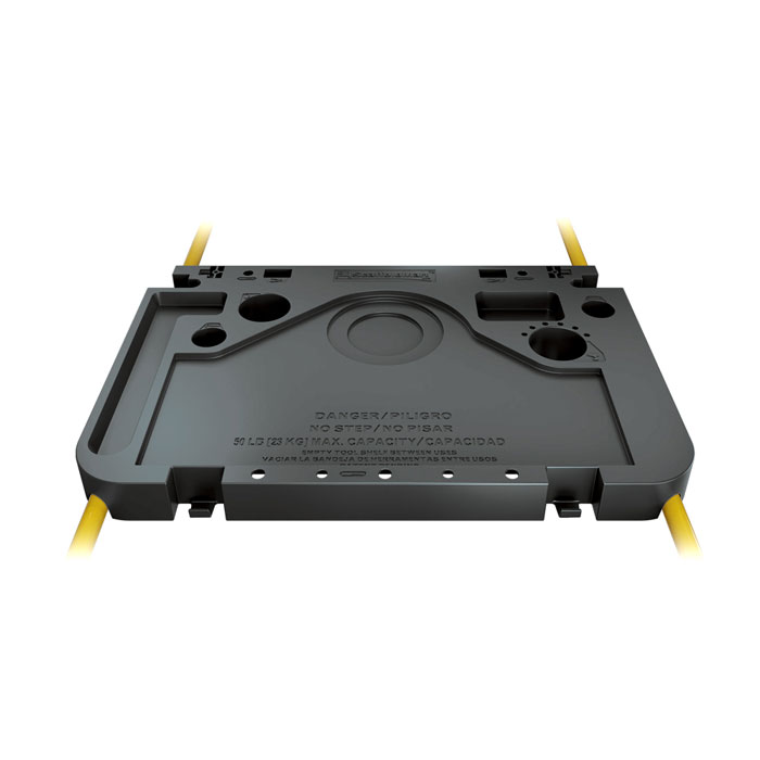 Estante para herramientas para nuestra línea de andamios multifunción. Se puede montar en múltiples posiciones en el sistema de barandillas 3-4 o en los marcos de los extremos. Contiene una variedad de herramientas e incluye un portacafé. Diseñado para mayor comodidad y funcionalidad, se adapta a donde más lo necesita.