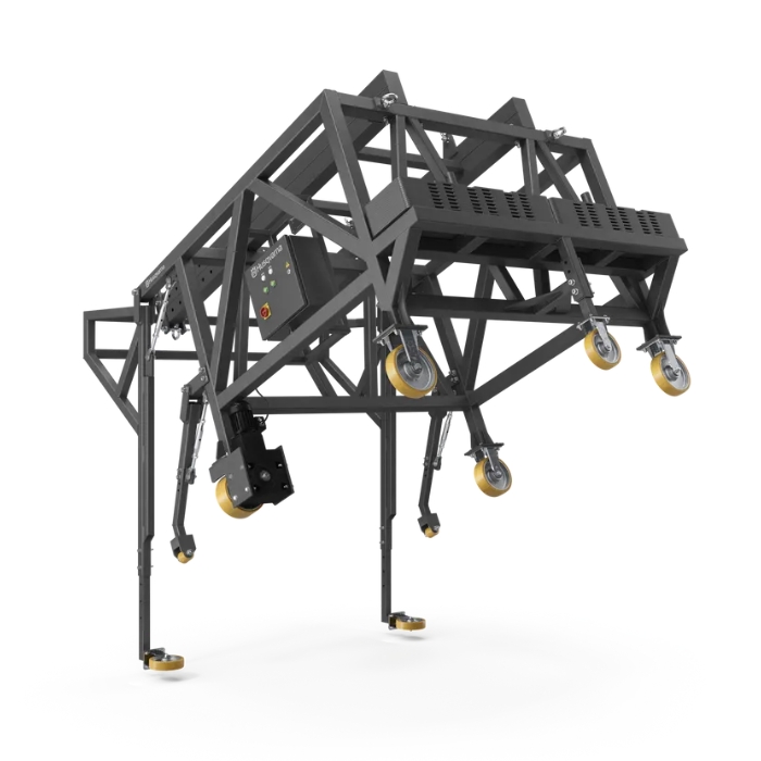 Sistema de elevación completo para depósitos con techos abovedados para la granalladora de acero Husqvarna Blastrac EBE 900V.